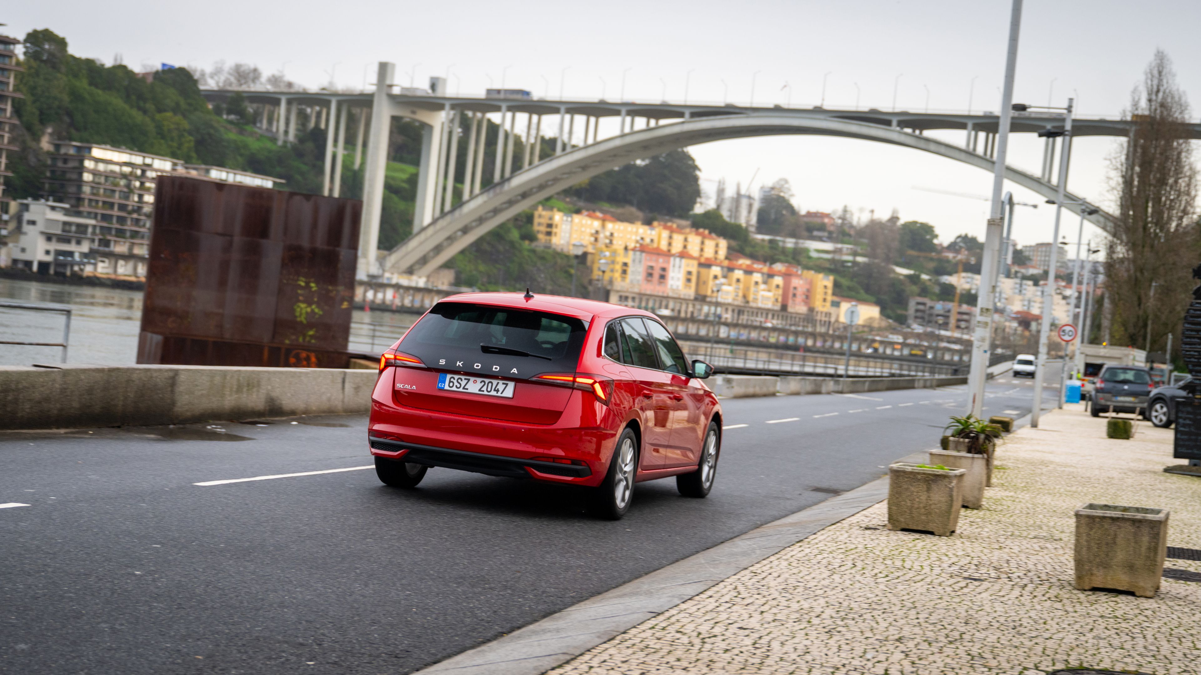 O Porto é uma cidade bastante compacta, onde há sempre algo novo a descobrir a cada esquina. Não é invulgar que os pilares de uma ponte comecem no jardim de alguém. As ruas são frequentemente muito estreitas, pelo que é importante ter atenção às dimensões do veículo. O compacto Škoda Scala sente-se perfeitamente à vontade aqui, circulando com facilidade pelas ruas. Existem também muitas ruas de sentido único que podem levá-lo a percursos inesperadamente longos, com subidas e descidas acentuadas e passagens muito próximas das entradas dos edifícios.